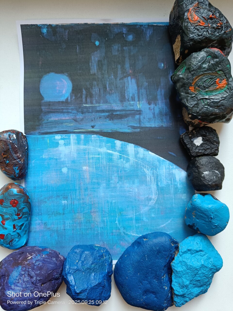 Įkvėpti muzikos, vaikai ant iš anksto atspausdintų menininko paveikslų klijavo ir spalvino akmenukus, kuriais išreiškė savo fantazijas, emocijas ir asmeninį pasaulio matymą. Kiekvienas kūrinys tapo savita mažųjų menininkų „simfonija“ – spalvinga, jausminga ir kupina kūrybinio džiaugsmo.